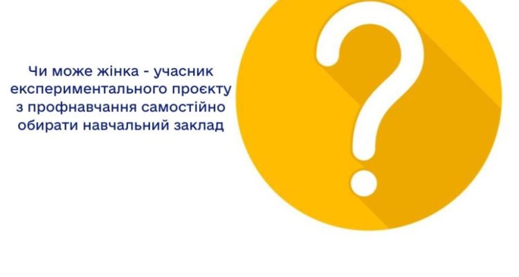 Відповідно до пункту 12 Порядок реалізації експериментального проєкту щодо організації професійного навчання жінок для працевлаштування у сферах, де вони були традиційно недостатньо представлені, затвердженого вказаною урядовою постановою, особа здійснює вибір закладу професійної (професійно-технічної) освіти для проходження професійного навчання.