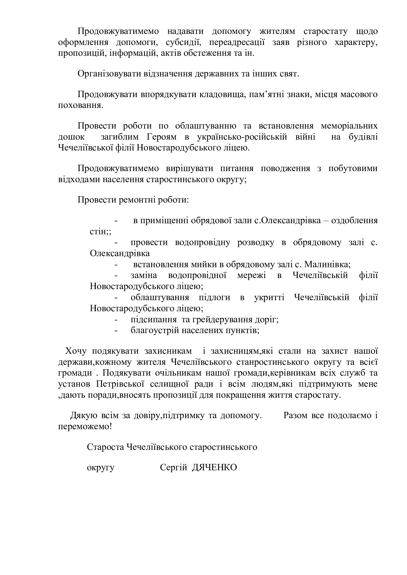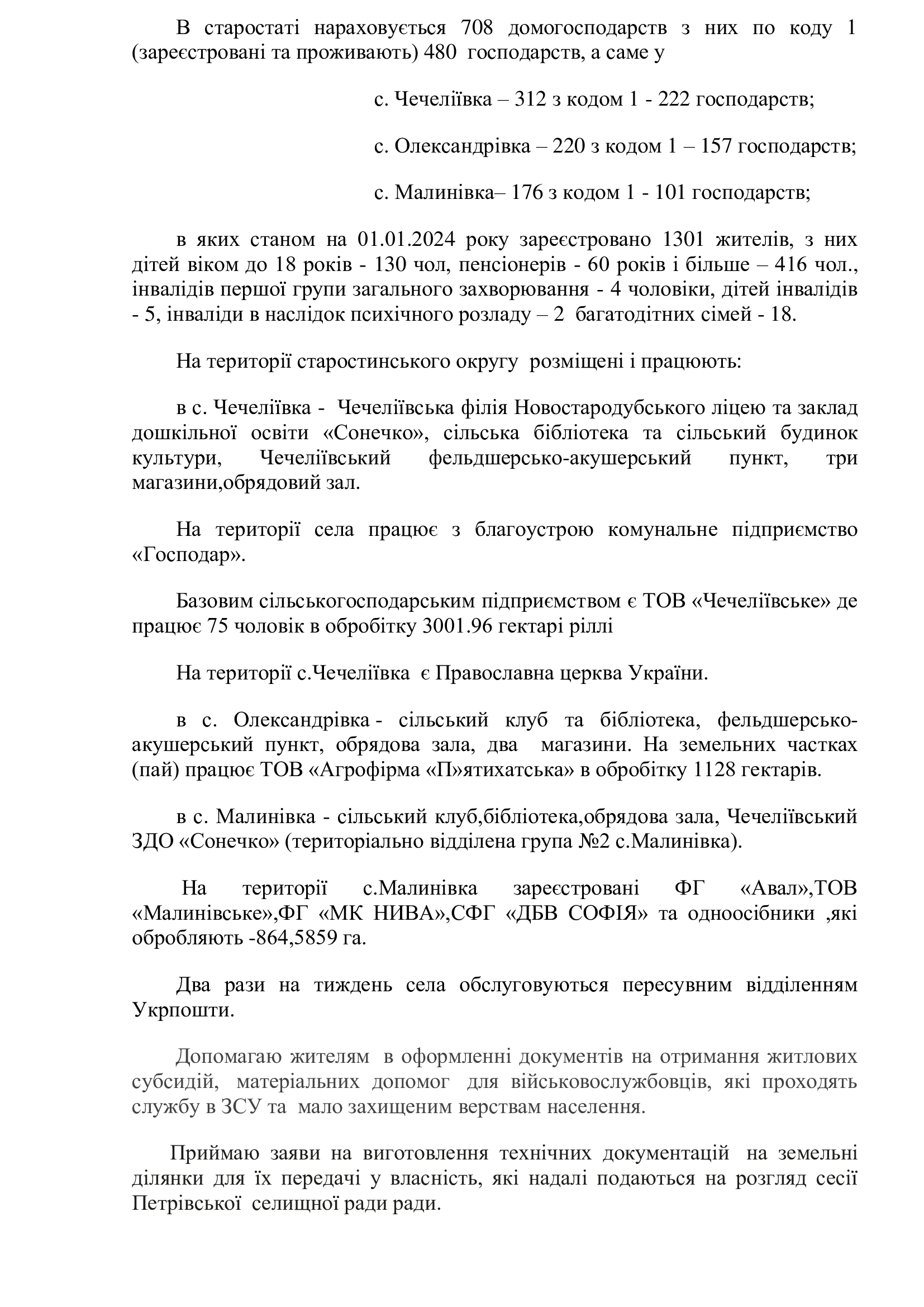 Звіт старости Чечеліївського старостинського округу за 2023 рік Петрівська селищна рада Консультації з громадськістю 19.03.2025
